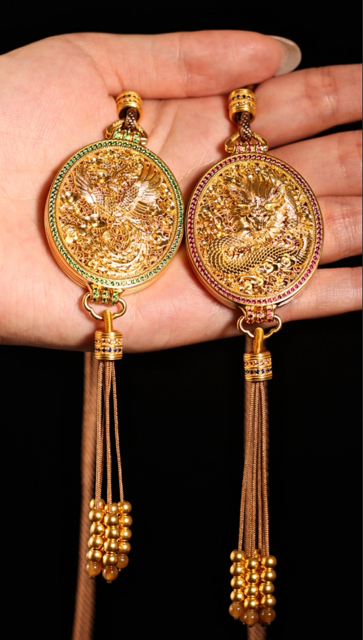 更值得关注的是设计理念的革新。传统的龙凤题材常显得厚重威严,而这组香囊通过花丝底座的轻盈感、宝石镶嵌的现代感,平衡了古典符号与当代审美。它让龙凤成为个人精神力量的象征——龙不再是皇权专属,而是每个人内心的进取精神;凤不再局限于后妃,而是所有追求美好生活的女性的写照。