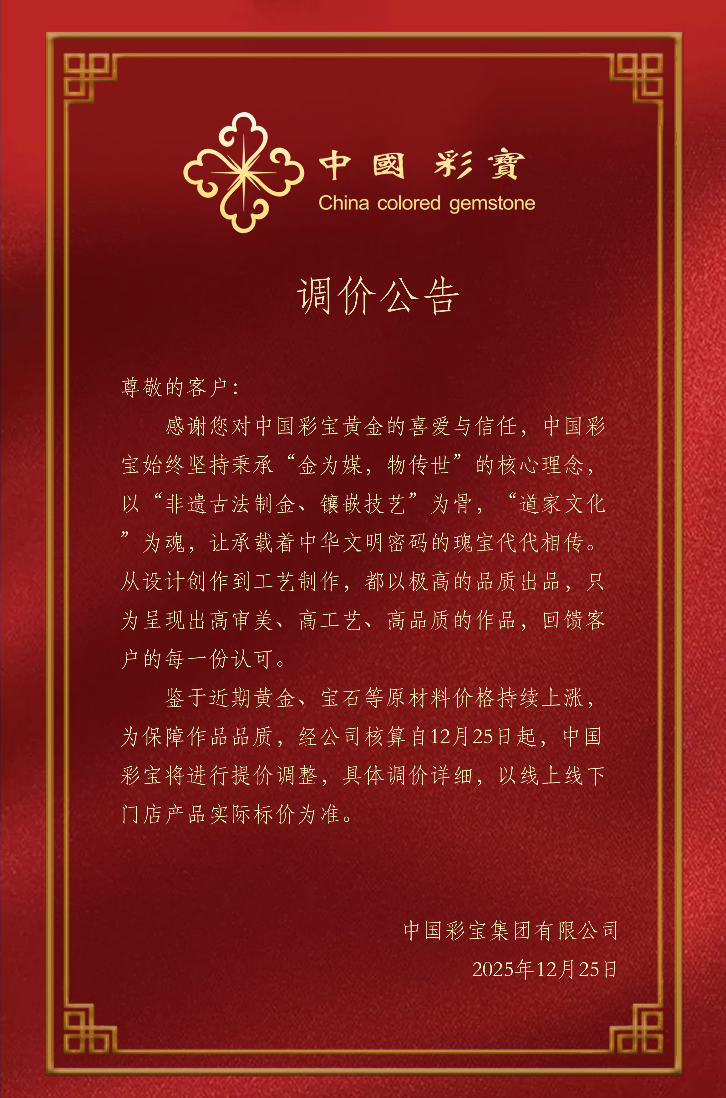 黄金调价通知
