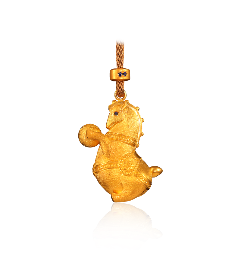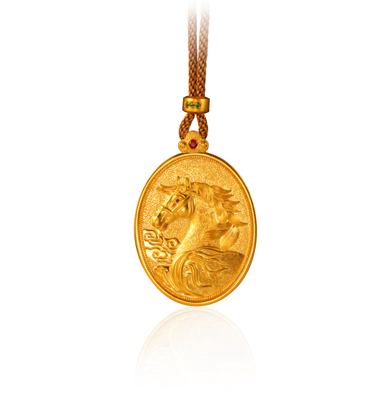 中国彩宝 深耕非遗古法黄金工艺,以锤为笔,以金为纸,将马年「奔腾向上」的期许、道家「天人合一」的哲思,錾刻于方寸金饰之上。