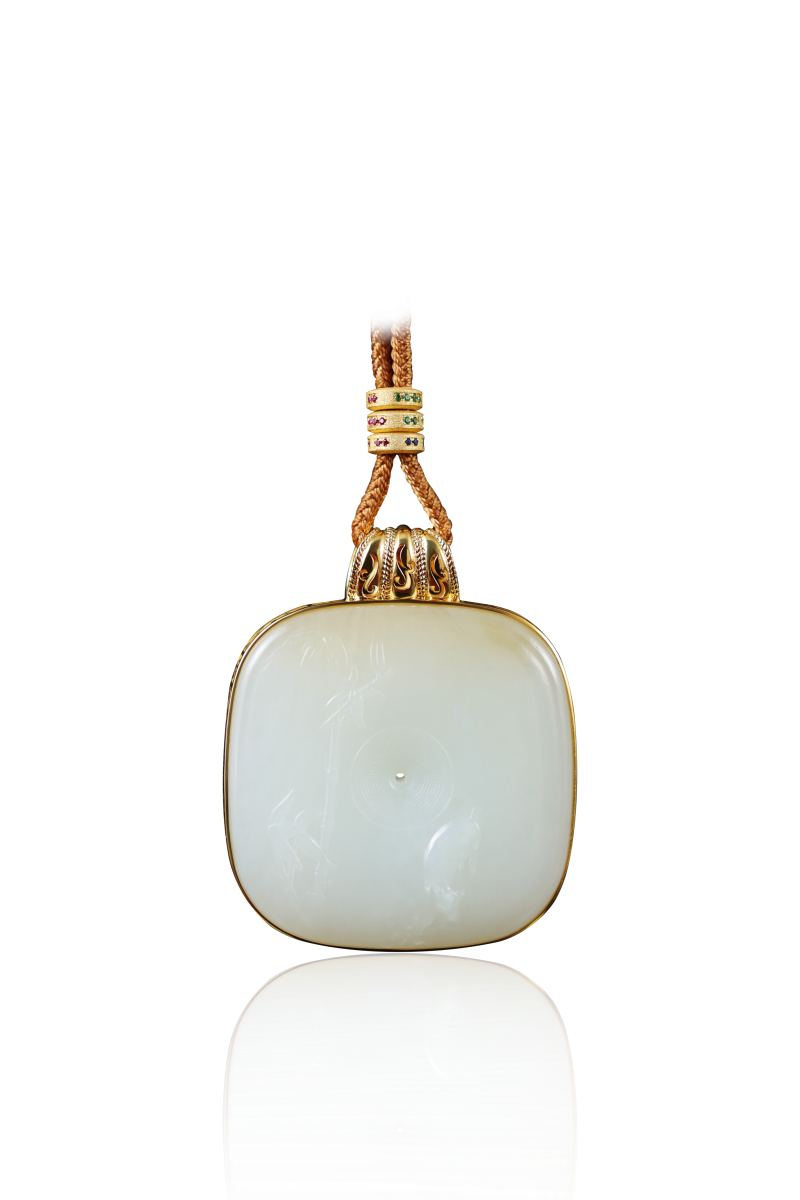 金镶白玉佩,凝月华、镌竹影,金玉相融间,藏君子温润风骨与东方雅韵。