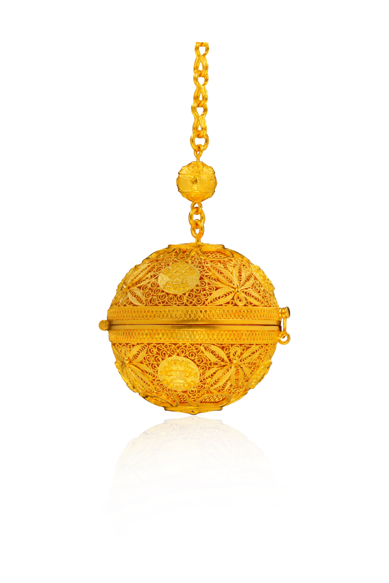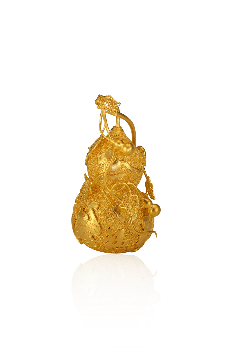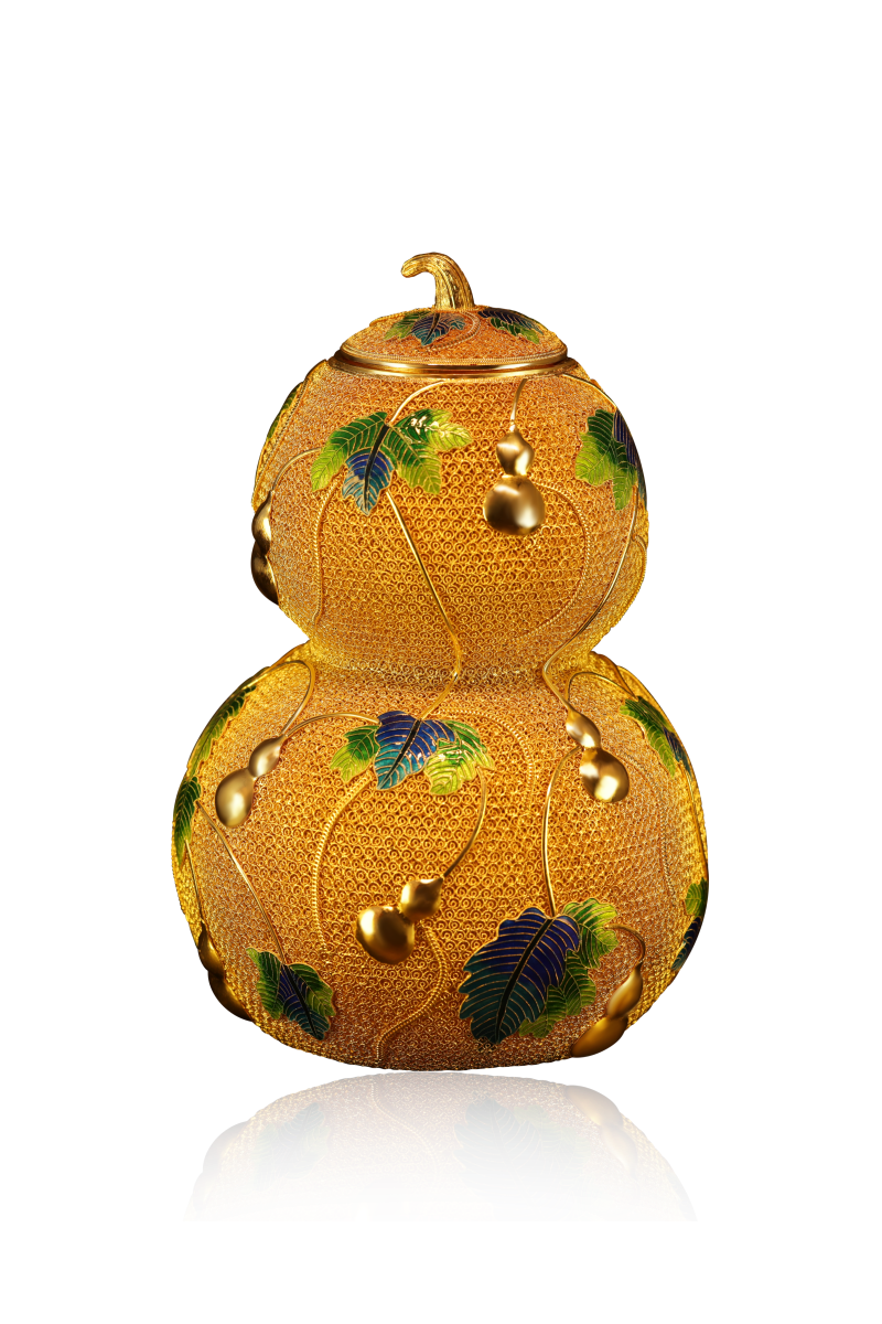 金丝缠福禄,錾刻映祥光;蔓绕千秋瑞,葫纳万代昌。